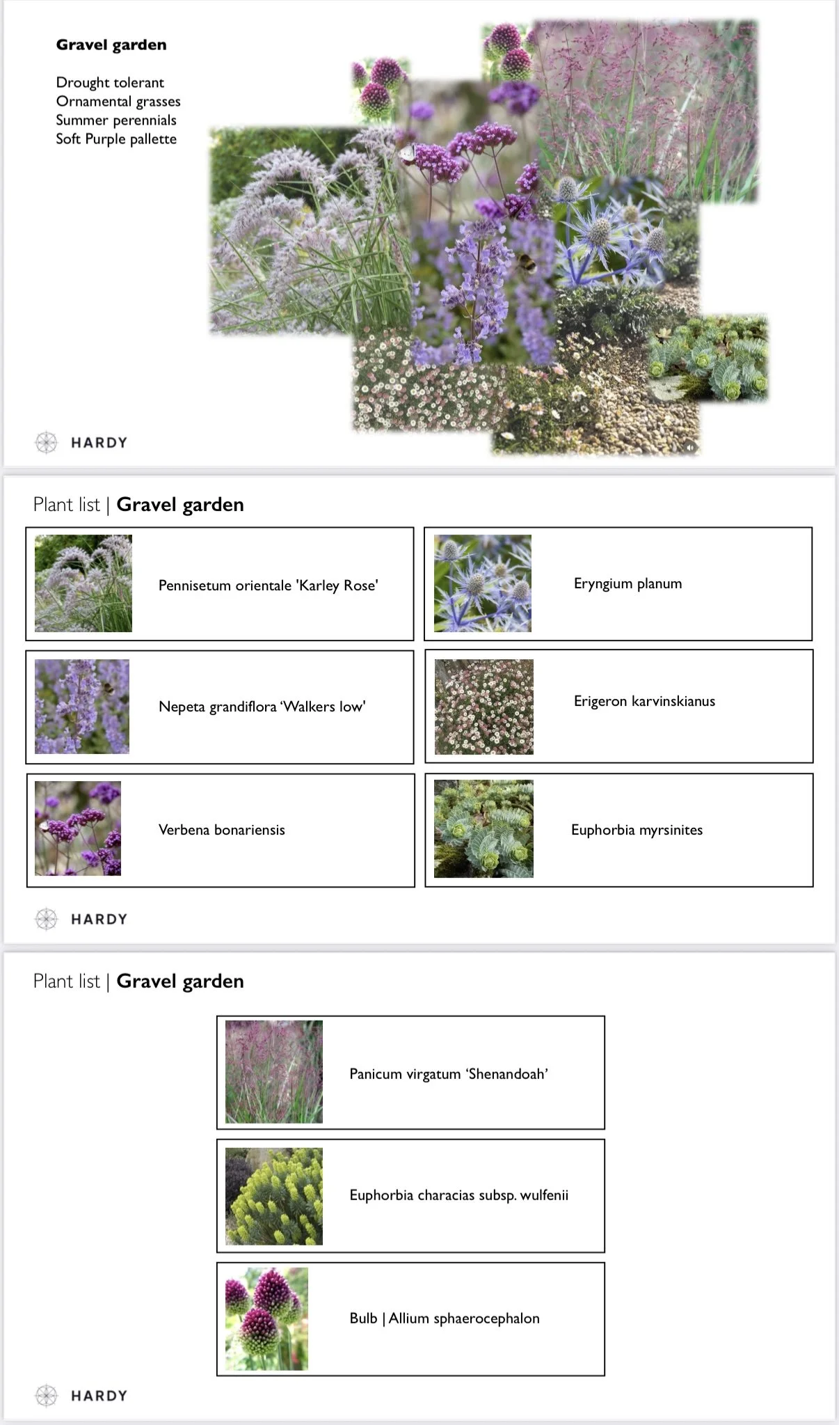 Scale layouts showing hard landscaping materials & planting locations. A detailed planting plan will come later.